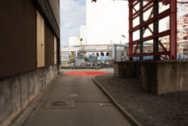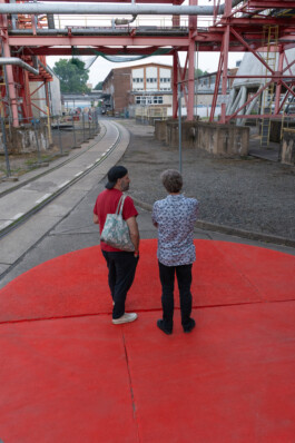 Hotspot verbindet lokale Gegebenheiten mit den abstrakten Ebenen der Klimakrise. Die Hitze des Asphalts wird zum Symbol einer überhitzten Gegenwart. Der rote Kreis verwandelt einen Moment der Orientierung in einen Raum der Reflexion. Je mehr Menschen einander im Hotspot begegnen, desto mehr verschwindet er. Die Warnung wird in Handeln übersetzt. Besucher*innen, die den Kreis betreten oder durchqueren, aktivieren den Raum und werden gleichzeitig zu Performer*innen. Indem selbst alltäglichste Handlungen rot hervorgehoben werden, wird die Handlungsmacht jedes und jeder Einzelnen verdeutlicht.