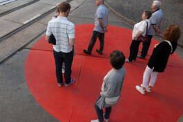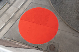 Hot Spot verbindet lokale Gegebenheiten mit den abstrakten Ebenen der Klimakrise. Die Hitze des Asphalts wird zum Symbol einer überhitzten Gegenwart. Der rote Kreis verwandelt einen Moment der Orientierung in einen Raum der Reflexion. Je mehr Menschen einander im Hotspot begegnen, desto mehr verschwindet er. Die Warnung wird in Handeln übersetzt. Besucher*innen, die den Kreis betreten oder durchqueren, aktivieren den Raum und werden gleichzeitig zu Performer*innen. Indem selbst alltäglichste Handlungen rot hervorgehoben werden, wird die Handlungsmacht jedes und jeder Einzelnen verdeutlicht.