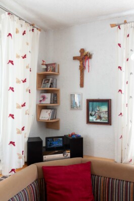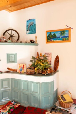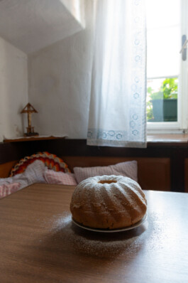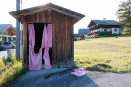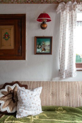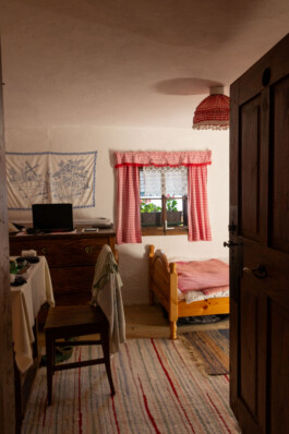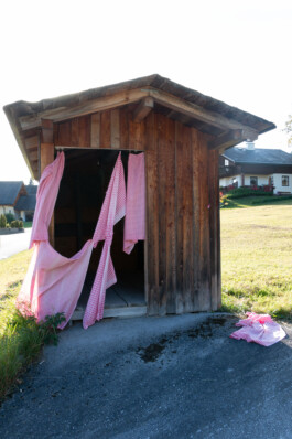 Anna zieht mit anderen jungen Menschen für eine Woche in dieses Haus ein. Die Decken sind niedrig, die Räume klein, die Schränke sind mit floralem Geschenkpapier tapeziert. An den Wänden hängt ganz viel Kitsch, der keiner ist, weil er authentisch und so romantisch ist. Während sich die Habseligkeiten aller mit Karo- und Blumenmuster des 20. Jahrhunderts vermischen, hängt Anna Bilder und Vorhänge ab. Sie legt den Badezimmerschrank mit der Minze, die im Garten wuchert, aus und macht eine verlassene Holzhütte wohnlich. Sie entwendet Gegenstände und gibt diesen während der Dauer ihrer Residency ein neues Zuhause in der Nachbarschaft. Der Geschmack von einst mischt sich mit dem Geschmack von heute und die Landidylle wird zum Bild, das jenes Haus schmückt.