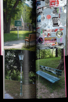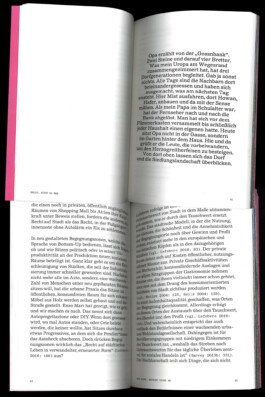 Taschenbuch und iPhone ergänzen als Text- und Bildpublikation das Ensemble. Wenn Besucher*innen auf der Bank sitzen, Smartphone oder Buch zur Hand nehmen, wird die Rauminstallation zum Alltagsraum. Er lädt ein, sich mit den Wechselwirkungen des gebauten und sozialen Raums von der Industrialisierung bis heute zu befassen.