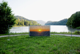 Drei Bauzäune versperren den Blick auf die Donau. Eine PVC-Plane wird mit einem Sonnenuntergang bedruckt und auf einem der Gitter installiert. Was im Alltag begrenzt, erweitert nun den Horizont. Anna Weberberger konstruiert Sehnsüchte und mesht die Ambivalenz vermarkteter Realitäten im Kontext neoliberaler Stadtentwicklung.