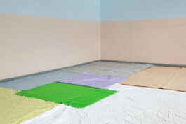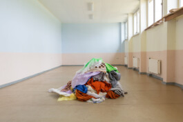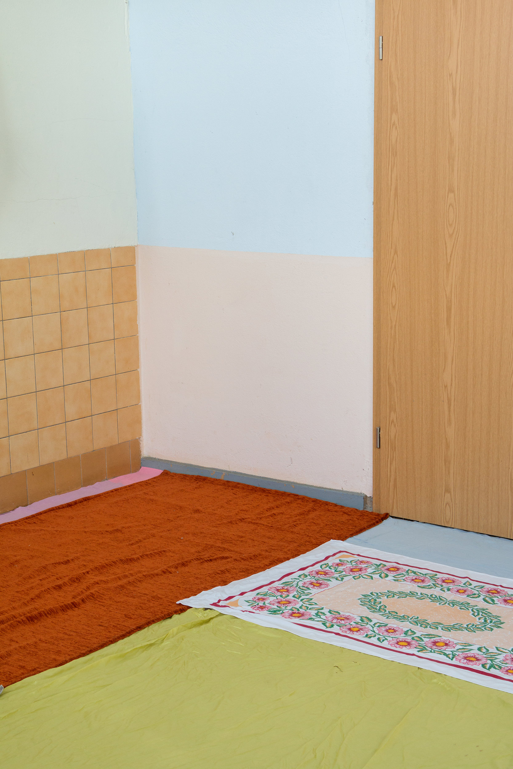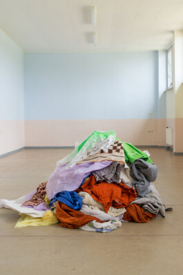 Ist es notwendig, für einen Raum Sorge zu tragen, der für niemanden mehr Sorge trägt? Die Obsoleszenz einer ehemaligen DDR-Schule wird zum Aushandlungsplatz von Bewahrung und Transformation. Anna reinigt einen kaputten Linoleumboden und kleidet ihn in Vorhängen, Decken, Handtüchern, Tischdecken, die aus dem Gebäude quellen. Mehrheitlich noch aus DDR-Zeiten stammend, bewahrt die Architektur sie wie die Geschichte selbst. In performativen Akten der Care trägt Anna Sorge für den Raum und eignet sich die Vergangenheit als künstlerisches Material an. Die mehrstündige persönliche Auseinandersetzung mündet in einer Installation, die Elemente des Gebäudes neu verhandelt und deren Zukunft zur Disposition stellt. Der Wunsch, den Boden herauszureißen, bleibt.
