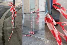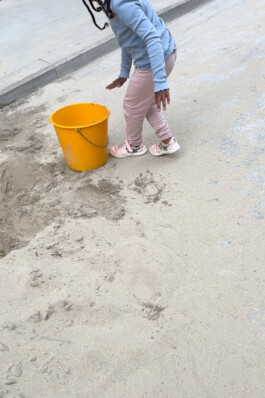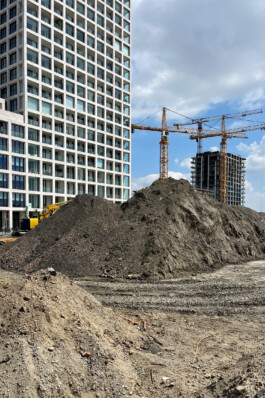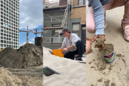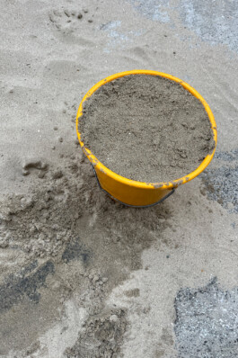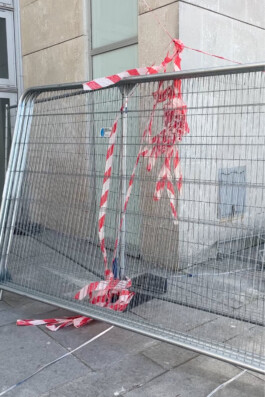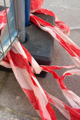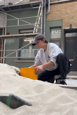 In der Werkserie Unfug eigne ich mir den urbanen Raum spielerisch an und verunstalte dessen Ordnung. Von der Passantin werde ich selbst zur Akteurin, die städtische Utopien im Kleinen Realität werden lässt. Absperrbänder, die als Überbleibsel von Baustellen um Pfosten und Gerüste gewickelt sind, flattern losgelöst als Drache im Wind. Bausand, der Pflastersteine versiegelt, wird zum künstlerischen Material. „Sous les Pavés, la Plage!“ In Kindheitserinnerungen versunken kommentiere ich den rasanten und gleichförmigen Städtebau.